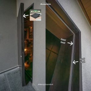 - Karena kebocoran suara paling besar biasanya dari celah, bukan hanya dari daun pintu