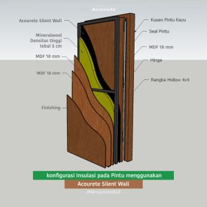 - Lapisan: pintu existing + Silent wall + Board (MDF/plywood) + finishing