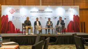 Pada Sabtu, 5 Juli 2025 Acourete diundang dan berkesempatan menjadi salah satu narasumber pada acara Seminar Akustik untuk Desain Interior yang diselenggarakan oleh INDO BUILD TECH ft. HDII Banten. Acara tersebut berlokasi di gedung ICE BSD, Tangerang Selatan, Banten. Peserta seminar cukup beragaram, mulai dari mahasiswa, arsitek, desainer interior, aplikator, hingga kalangan profesional.